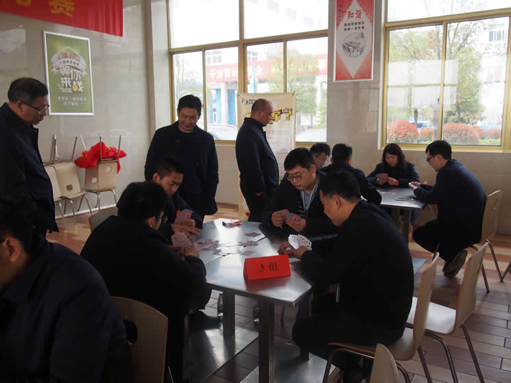 3月23日总经办后勤人员提前做好了现场布置工作,准备好奖品桌椅等,各部门参赛人员在下午纷纷到达活动现场,进行了抽签分组等赛前准备。公司总经理、副总、生技部经理、行政部门经理等作为本次掼蛋比赛的裁判员,就竞赛的要求和注意事项进行了动员。总经理办公室经理周志丹主持了此次掼蛋比赛:在春暖花开的时节,金泰公司迎来了第一季度文体活动,希望大家本着“友谊第一、比赛第二”的原则,赛出风格,赛出水平,预祝各部门选手取得好成绩。随着一声开始,比赛在紧张而欢乐气氛中拉开序幕。
