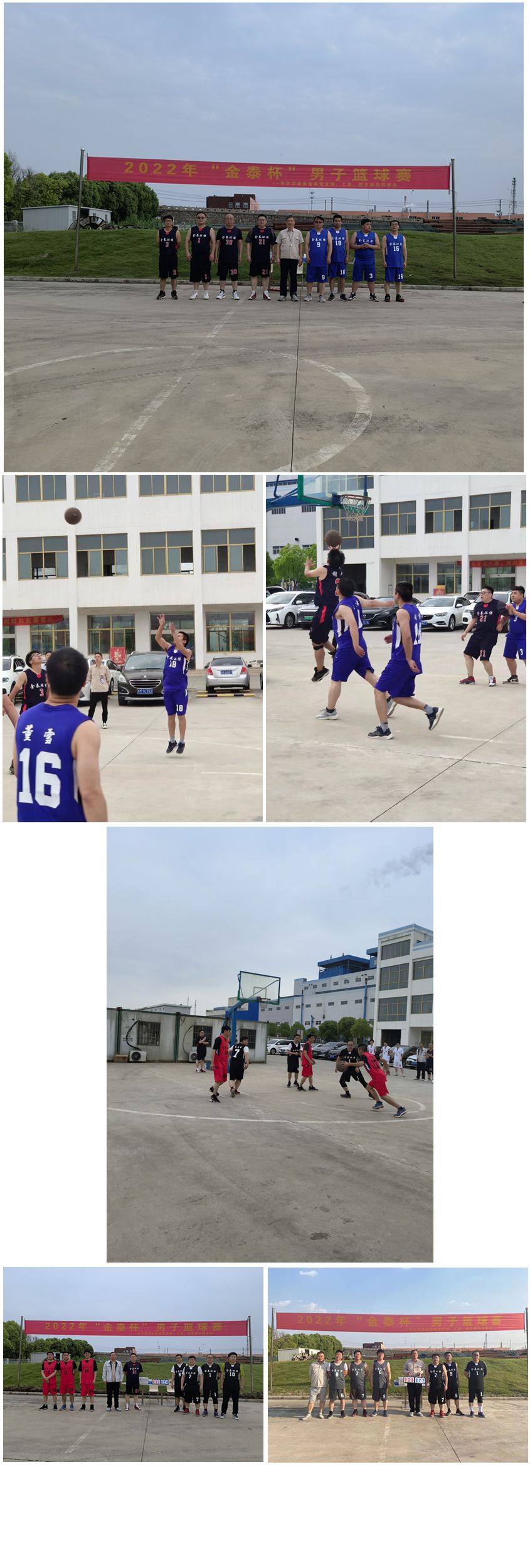 5月初夏,清逸的栀子花香飞舞。微热的阳光穿过云层,铺在了金泰篮球场上,燃起了运动员的比赛激情。 为了丰富员工业余生活,激发员工追求卓越的斗志,提高团队凝聚力,培养团队总结归纳、高效解决问题的习惯。党工团精心策划并组织了第二届“金泰杯”篮球赛。比赛消息一出,众队长迅速招兵买马,行政和生技部的同志们纷纷响应,迅速组成了6支风格迥异的参赛队伍,剑指冠军。 9日下午4点20,随着一声清脆的哨响,第二届“金泰杯”篮球赛正式拉开帷幕。6支参赛队伍在工作人员有条不紊的组织下,活力四射,蓄势待发;队员们个个为了荣誉而挥洒汗水,全力以赴。 小组赛里,各支队伍团结一致、努力拼搏,奉献了一场又一场篮球盛宴。中投、上篮、三分、抛投,层出不穷的得分手段,令观众眼花缭乱、为之喝彩。在经过15场激烈的小组赛角逐后,最终1队、2队、4队和5队分别脱颖而出,进入到更加紧张刺激的半决赛。 25日,万众瞩目的半决赛如期而至。4支队伍为了最后的决赛名额,开始捉对厮杀。半决赛第一场,5队开场后便接连得分,展现了柔和的投篮手感。1队也不甘示弱,频繁冲击篮下,咬住了比分。下半场开始后,1队开始了追分行动,内外结合,相继开花。两支队伍都展现了完美的竞技状态。终场前一分钟,全场最精彩的时刻到来,5队在落后5分的情况下,连续命中2个3分,反超1分。此时距离全场比赛结束仅剩2秒时间,压力完全来到了1队这里。关键时刻,1队队员在全场观众的注视下投出了三分球,篮球在空中划出美丽的弧线,应声落网,完成了2秒绝杀的神迹。 半决赛第二场,2队保持了小组赛头名的火热状态,篮下屡屡得手,气势如虹。4队没有被2队的攻势压住,齐心协力展开反击,将比赛的悬念留到了最后。最后,2队更胜一筹,携手1队进入最终决赛。 2022年“金泰杯”男子篮球赛的决战号角即将吹响,1队与2队一起步入战场的中央,准备为最后的荣耀而战。让我们一起期待决战的篇章,见证王者之队的诞生。