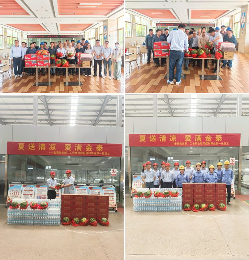 党建引领入一线,夏日清凉暖人心。为切实做好夏季防暑降温工作,关爱一线员工的身体健康安全,有效预防职业性高温中暑事件发生。金泰党支部、工会联合开展了“夏送清凉 爱满金泰”的慰问活动,把“娘家人”的关怀和夏日“清凉”送到了员工的心中。