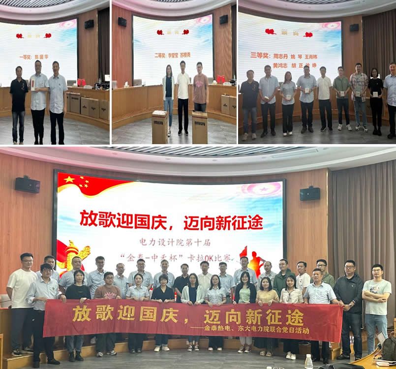2023年9月21日,为迎接国庆74周年,交流党建经验,促进兄弟单位之间的友谊,金泰环保党支部联谊东大电力院党支部,共同开展了主题为“放歌迎国庆,迈向新征途”的第四次联合党日活动,同时举办了“金泰-中禾杯”卡拉OK比赛。